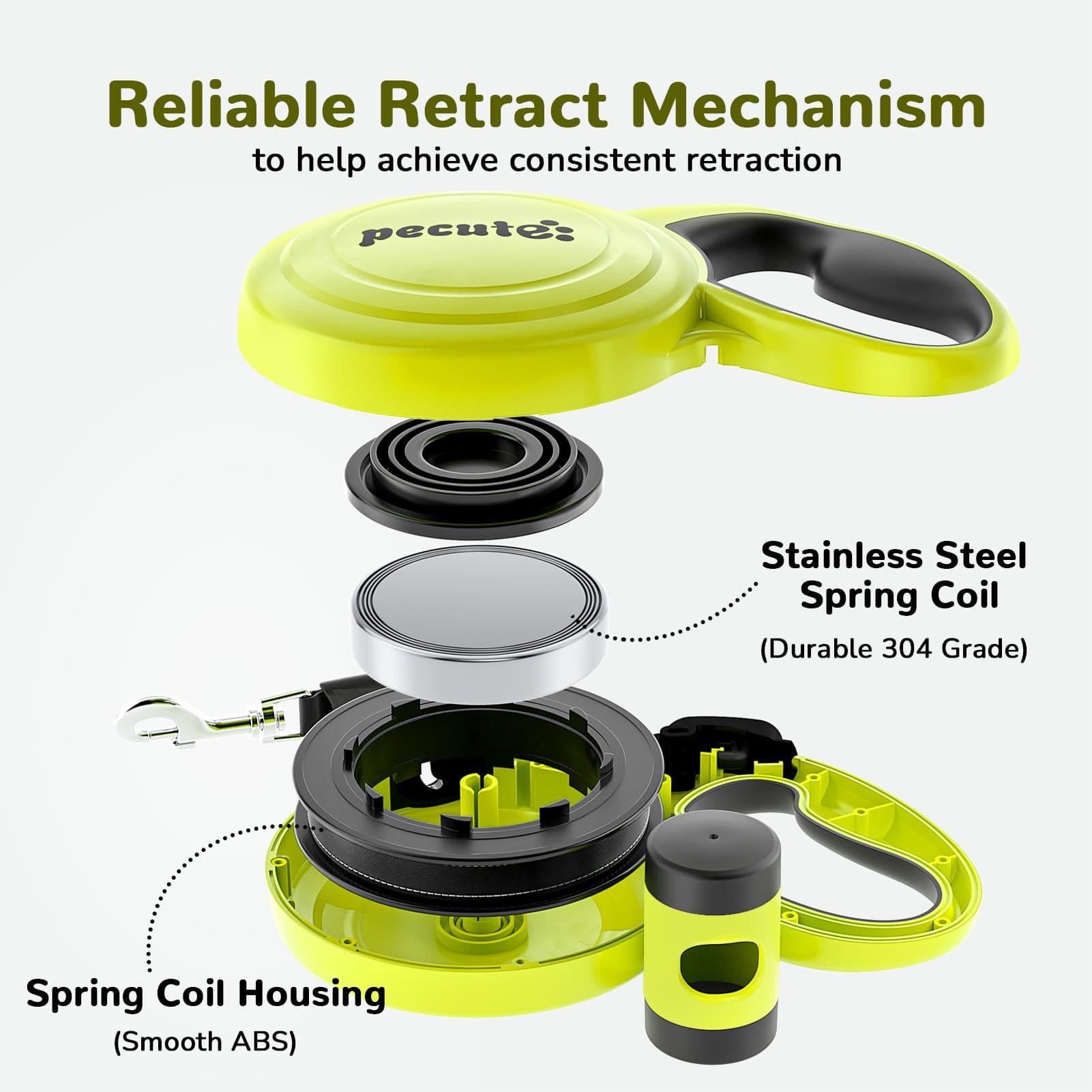 Pecute Retractable Dog Leash with Dog Waste Bag Holder