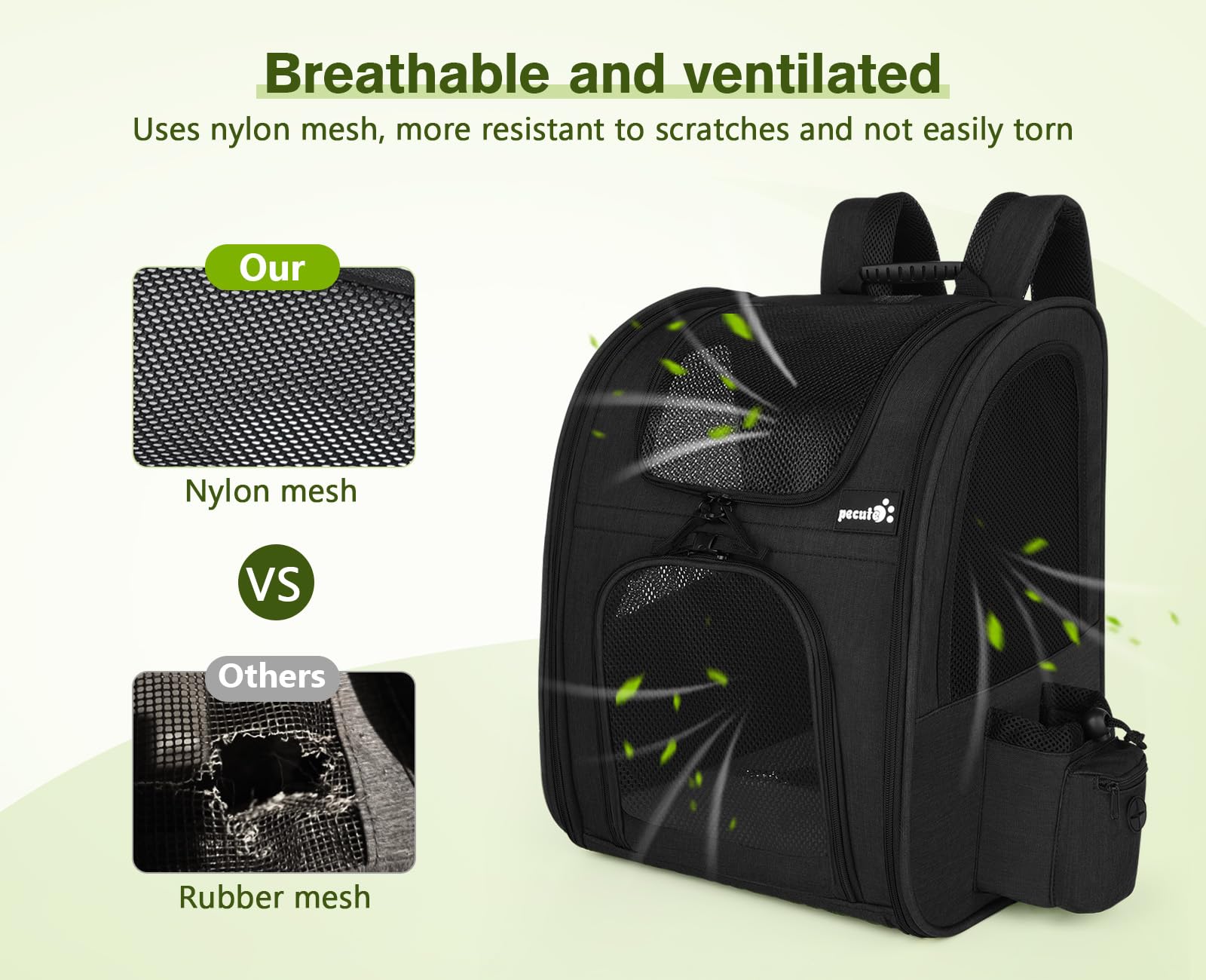 Pecute Cat Carrier Dog Backpack (Black) Pecute Hands Free Dog Leash
