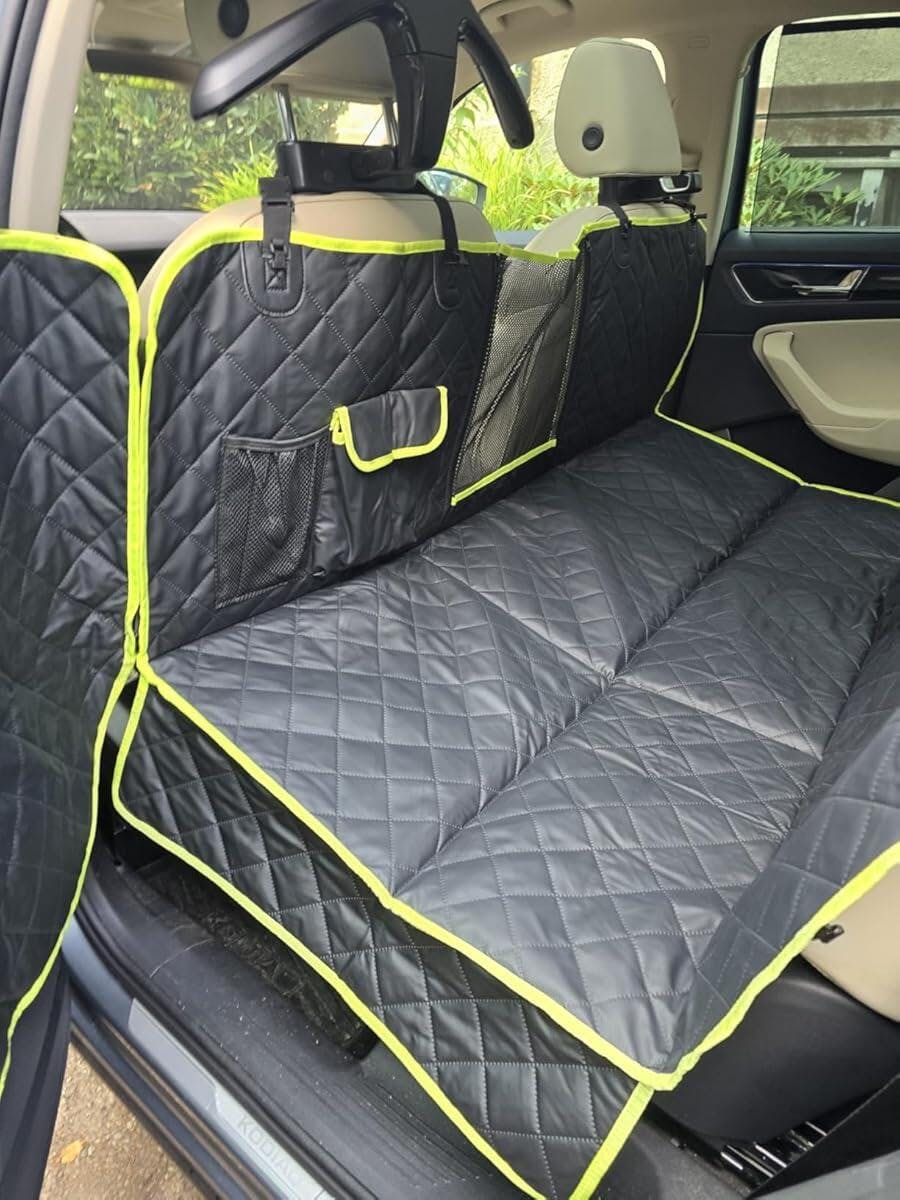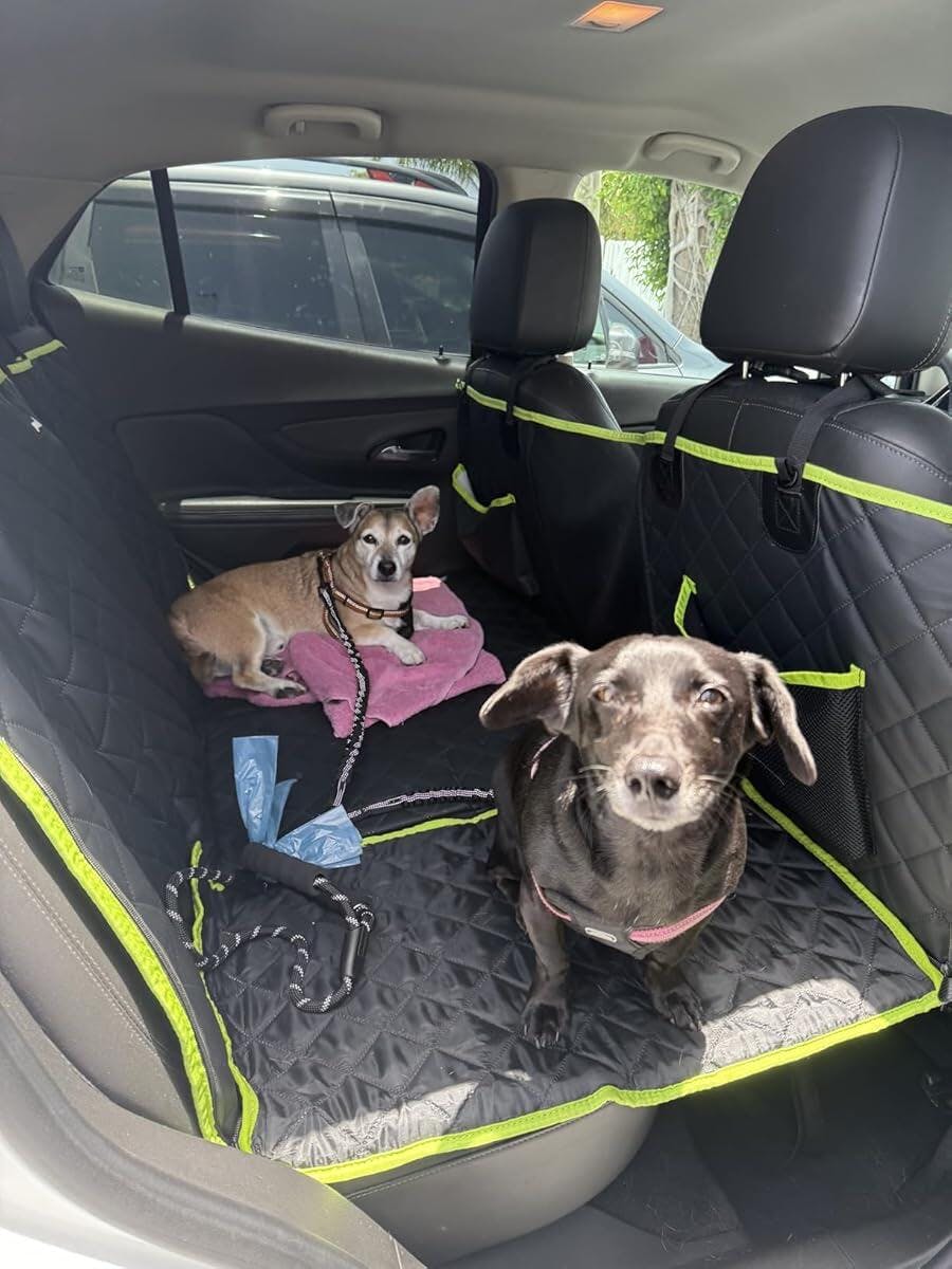 Great car owners with pets! I’ve used it on a recent road trip with my big German Shepherd, and it’s been a lifesaver. The car window fixing method keeps it securely in place, preventing scratches on the car doors—no more messy hair or paw marks on my vehicle’s interior. The upgraded sofa leather fabric is super durable, scratch-resistant, and easy to clean, even after spills. The foldable design is a huge plus—when not in use, it’s tucked neatly into the front seat, saving space. The storage pockets are perfect for keeping essentials like water bowls and toys organized. The 40% increased space ensures my dog can move freely without sliding into the footwell, and the hard PVC bottom supports up to 330lbs, so even large breeds are safe. The leather’s soft touch is comfortable for my dog, and the easy entry/exit design makes it ideal for adventures. It’s a reliable, stylish solution for protecting your car while keeping your furry friend cozy—worth every penny for pet owners who value both comfort and durability.