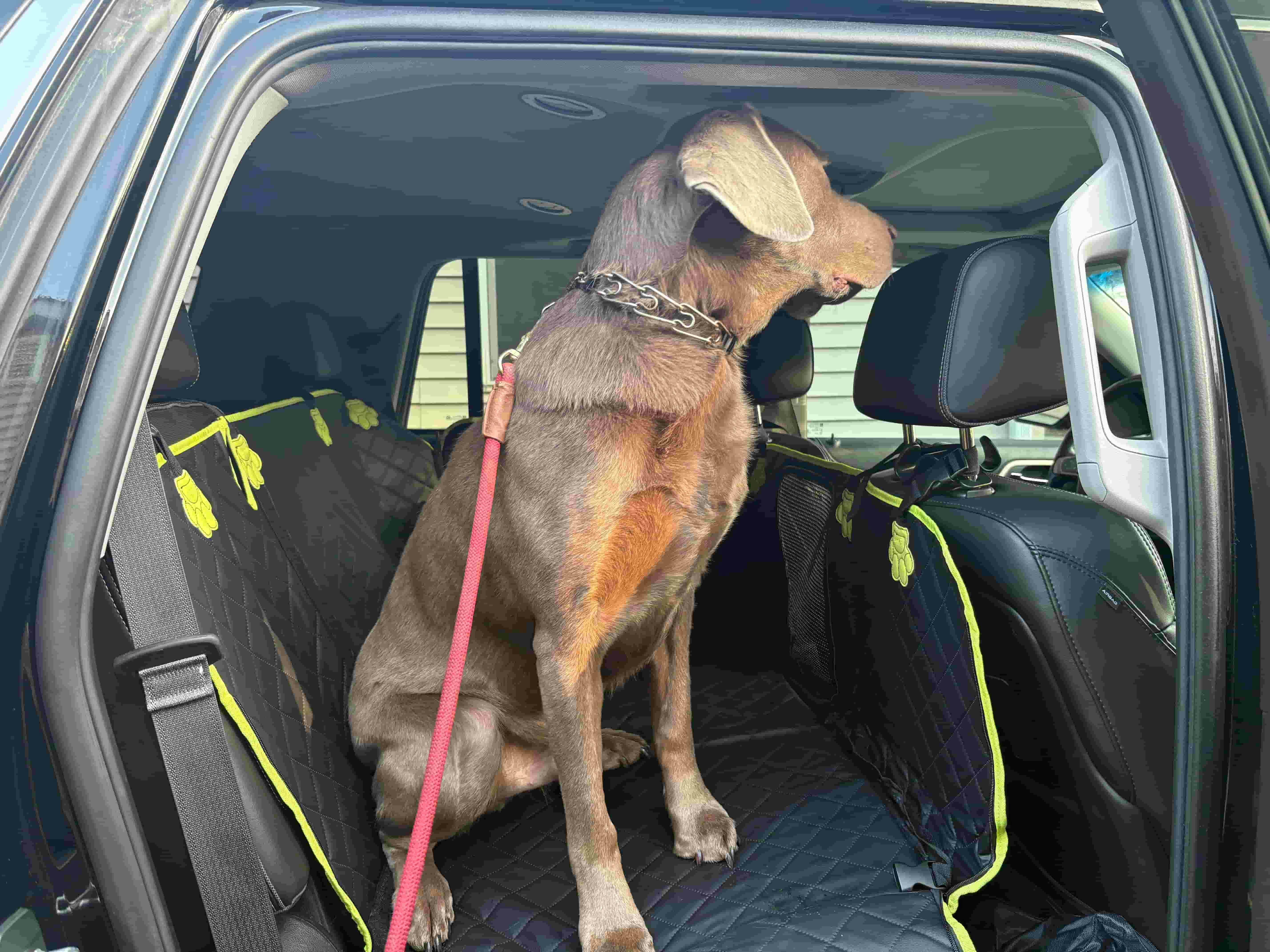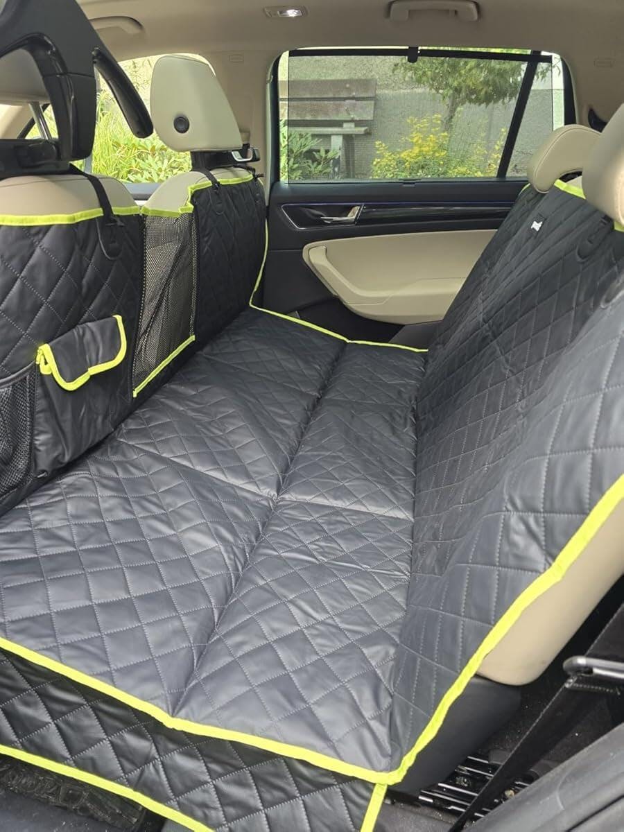 Wir transportieren keinen Hund sondern andere sperrige Dinge wie unsere Escooter. Diese Decke ist sehr gut verarbeitet und stabil. Die zusätzliche Polsterung für die Sitzfläche verhindert auch Abdrücke von schweren Gegenständen. Der Stoff ist abwaschbar und sieht etwas nach Kunstleder aus. Also auch optisch ansprechend. Die Fotos sind aus einem Skoda Kodiaq. Passend also auch für größere Autos. Auch die Befestigung an den Windschutzscheiben funktioniert. Der Innenraum ist bestmöglich geschützt. Klasse!