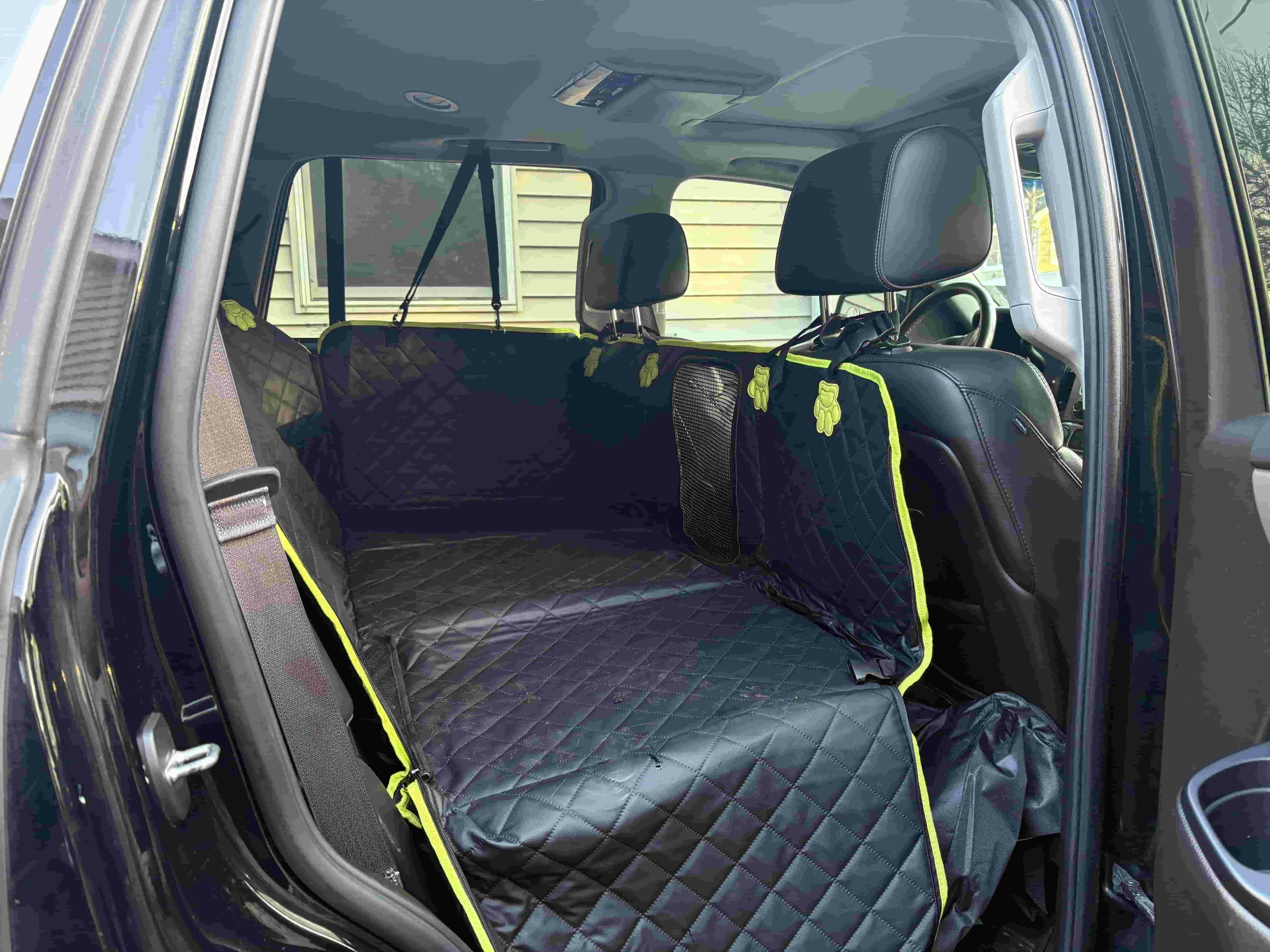 I’m very pleased with this purchase. It’s easy to set up, durable & I can blow out any hair/dirt or take it out & spray it down. I’m a dog sitter so I have multiple size dogs & it’s very supportive from small to large dogs & works to prevent them from jumping to the front seat. I have a sub compact SUV and it fits my car & also my husbands Jeep Grand Cherokee.