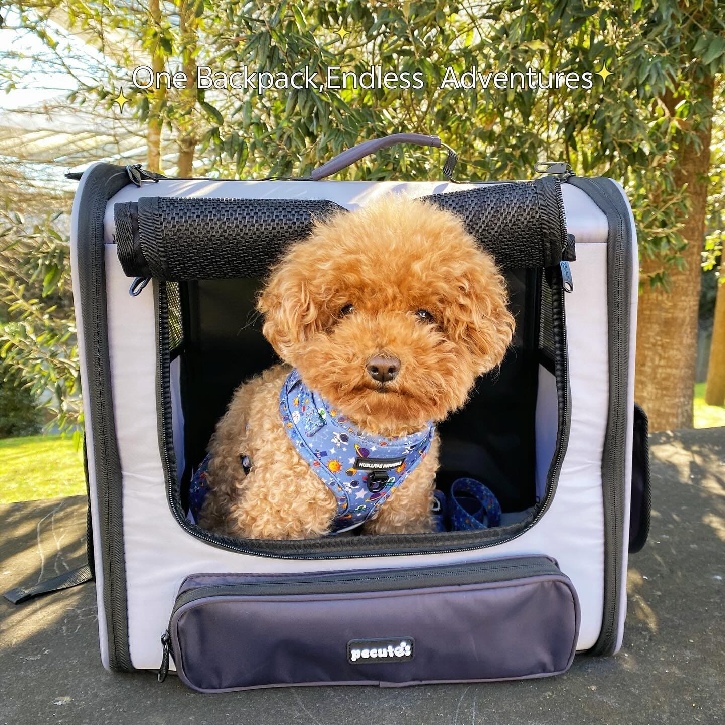 Paws and reflect: My new ride is paw-sitively fabulous! ✨ With this hard-top, extra-wide backpack, I’m living my best luxe life. Who’s ready to join me on my next adventure? 🌟🎒